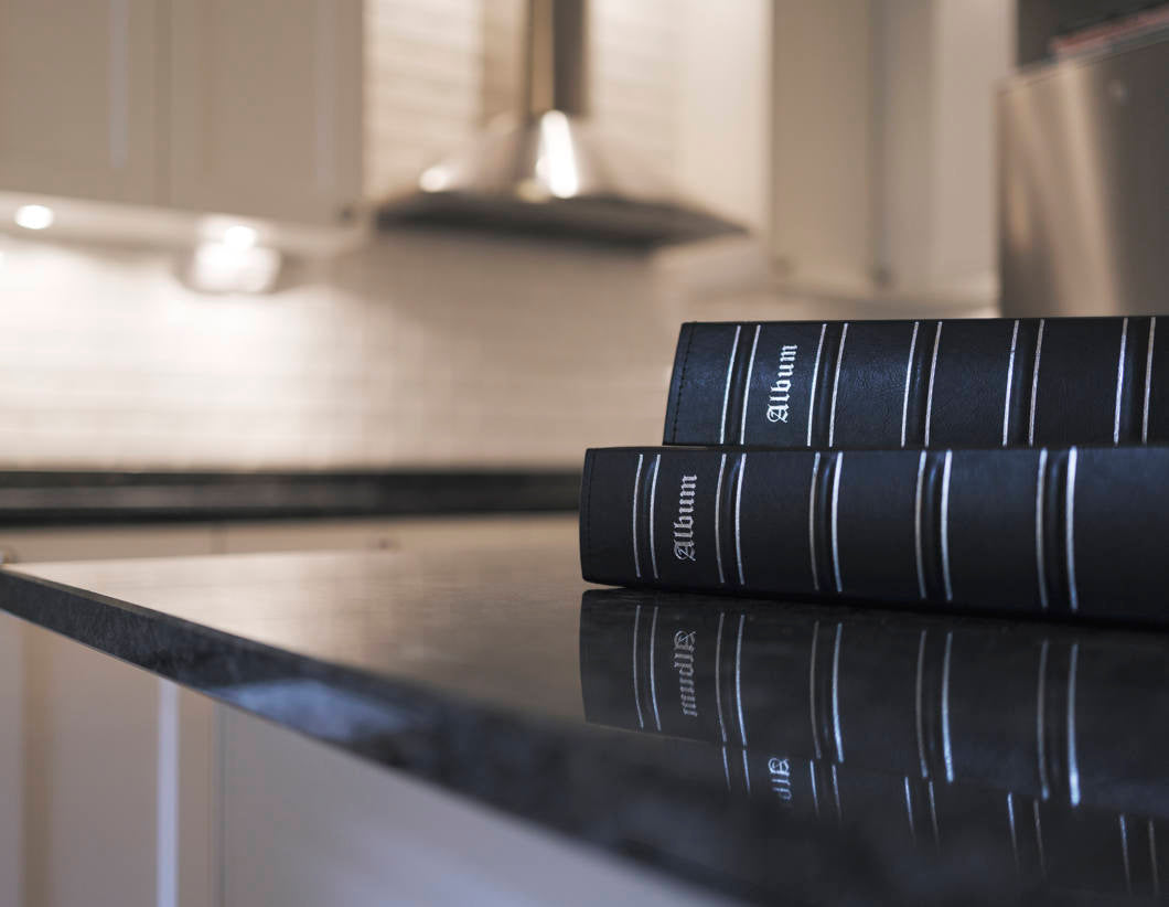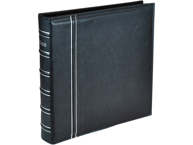 Svart med sølvdetaljer. Brukes med kartongark eller fotolommer (ikke inkludert).